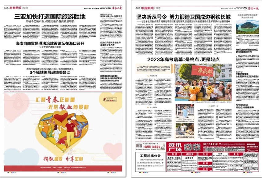 文教體育:這一版面主要報道當日娛樂、文化、教育和體育新聞,包括全國各大演出、院團、音樂、電影等的情況;評論觀察:主要為各類評論文章空間,關注社會熱點、深度解析當下事件;旅游推薦:《海南日報》還特別推出“旅游推薦”欄目,每天提供海南省內優質旅游線路及景點。