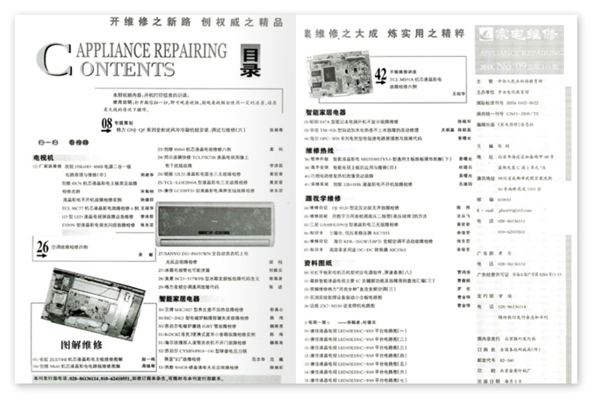 《家電維修》雜志,(月刊),是面向全國發行的數碼通訊類期刊,雜志擁有獨到的思維與敏銳的眼光,使得雜志成為眾多國際大品牌客戶重視的核心媒體之一。發行量大、讀者面寬、影響力廣、權威性強、實用性好的一份刊物。