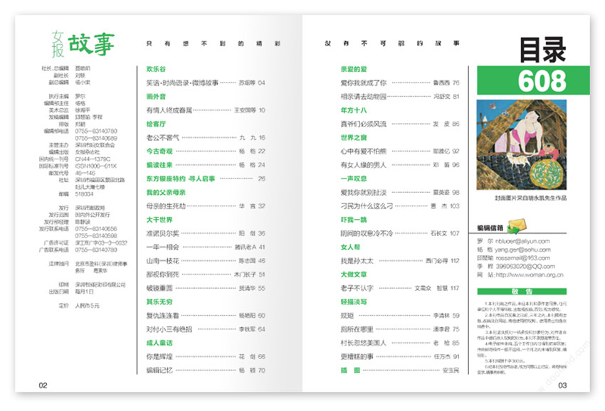 《女報?故事》雜志由國際頂級漫畫大師莫迪洛鼎力支持,深圳女報雜志社隆重出版,通俗而不低俗,巧妙演繹故事,妙趣橫生;幽默而不沉默,大膽正視現實,直言不諱,融紀實性和故事性于一體,時尚新銳、深沉穩重,以不同于傳統故事的新穎視角,讓讀者耳目一新。