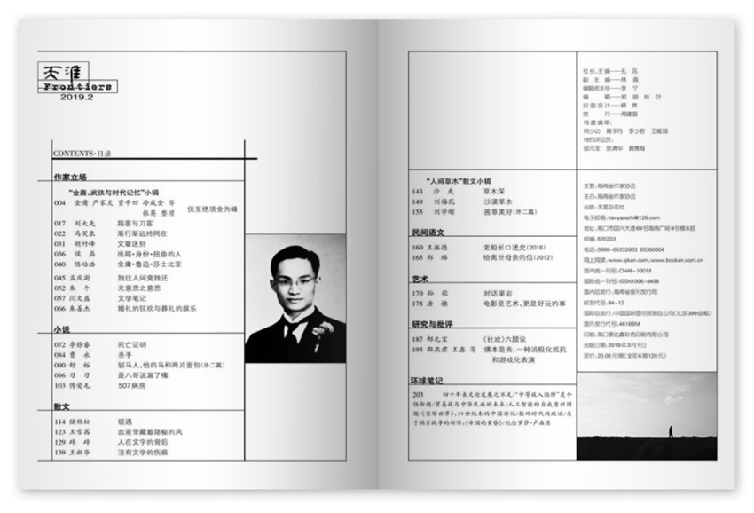《天涯》雜志,(雙月刊),是面向全國發行的文學文摘類期刊,雜志擁有獨到的思維與敏銳的眼光,使得雜志成為眾多國際大品牌客戶重視的核心媒體之一。天涯設有:作家立場、民間語文、特別報道、研究與批評、文學、藝術,主要發表社會思想批評、民間語文資料(日記、書信、流行語、口述實錄、契約、啟事等各種民間文本)等等。