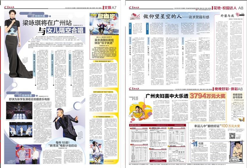 文娛生活版塊:主要報道了各種有關娛樂、生活等方面的新聞,主要是消費性的新聞和信息;公益慈善版塊:報道有關公益和慈善方面的新聞,關注社會公益活動,讓讀者關注公益事業?!堆虺峭韴蟆纷鳛閺V東省地區的主流媒體,努力實現對全行業、全社會、全國的新聞報道和宣傳,贏得廣大讀者的信任和支持。