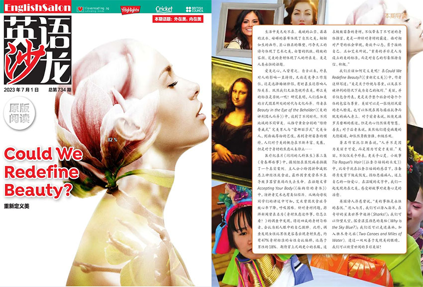 雜志一直緊跟時展,給讀者帶來豐富的社會熱門話題探討,關注現實生活,貼近現代人內心世界,帶領讀者一起思考,獲得啟迪,受益匪淺。故事豐富、內容健康,親和力強,充滿正能量,跟隨時代的發展和進步,是目前有影響力的外語雜志之一,帶給讀者無限感悟與啟迪。