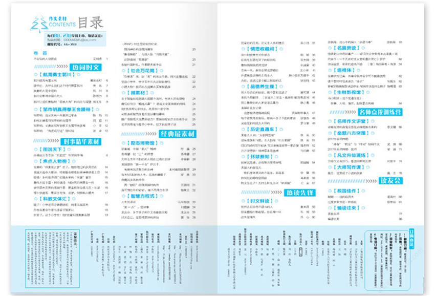 《意林·作文素材》雜志由意林資深編輯團隊在深入研究中高考、以及各學期期末考試作文題目的基礎上,聯合北大人大附中等教學一線名師,專門為中學生量身定做、具有實用性和思想性的作文讀本。半月刊,是面向全國發行的學習輔導類期刊,雜志擁有獨到的思維與敏銳的眼光,使得雜志成為眾多國際大品牌客戶重視的核心媒體之一。
