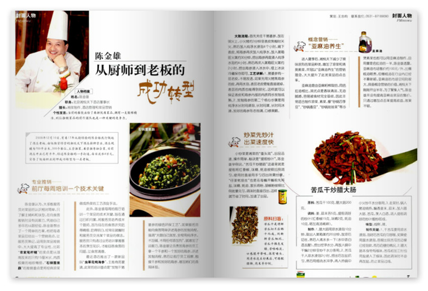 《中國大廚》為廚師而“生”的專業(yè)餐飲技術(shù)期刊,內(nèi)中包括廚師們關(guān)心的各地流行新旺菜品、烹飪創(chuàng)新技法、廚房管理實(shí)用經(jīng)驗(yàn),以及各種新老原料的養(yǎng)制、味汁醬汁底料的神秘配比等。