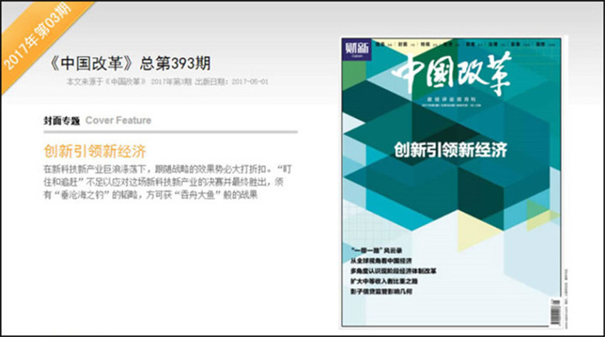 《中國改革》雜志,(雙月刊),是面向全國發行的時政新聞類期刊,雜志擁有獨到的思維與敏銳的眼光,使得雜志成為眾多國際大品牌客戶重視的核心媒體之一。雜志得到國家發改委宏觀經濟研究院、中國經濟體制改革研究會、中央黨校、社科院、北大、人大等科研院校鼎力支持,與其共享優質學術資源,擁有由35名著名專家學者組成的學術委員會和由數百人組成的網絡專家隊伍作為撰稿資源。