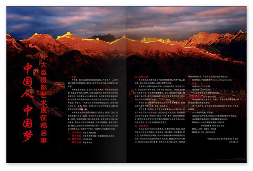 《中國攝影家》雜志,(月刊),是面向全國發行的旅游攝影類期刊,雜志擁有獨到的思維與敏銳的眼光,使得雜志成為眾多國際大品牌客戶重視的核心媒體之一。一本兼顧實用性的攝影刊,其中視角獨特、技法純熟的作品能開拓創作眼界,講解細致、配圖準確的方法能提升攝影藝術和技術水平。